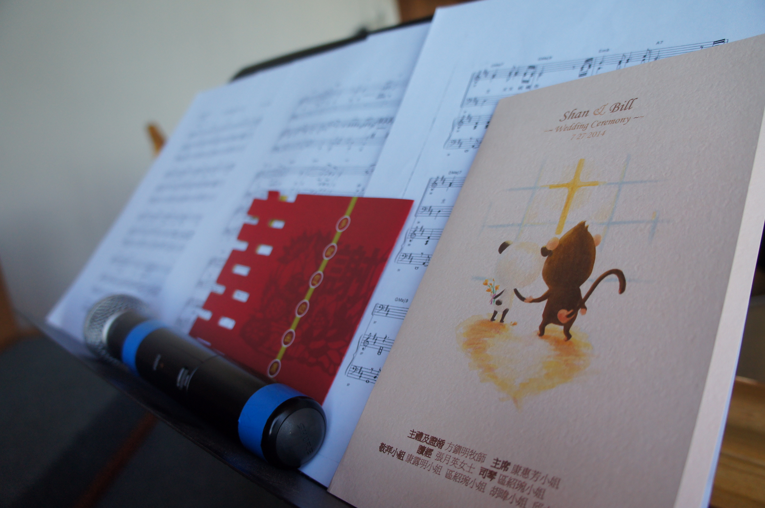 我哋敬拜隊嘅陣式﹗哇,我都未試過揸住個咪唱成幾首歌呢,希望一切順利啦~揭下程序表,呢個唔駛問,呢對熊貓馬騮couple插畫一定係珊珊嘅傑作丫﹗