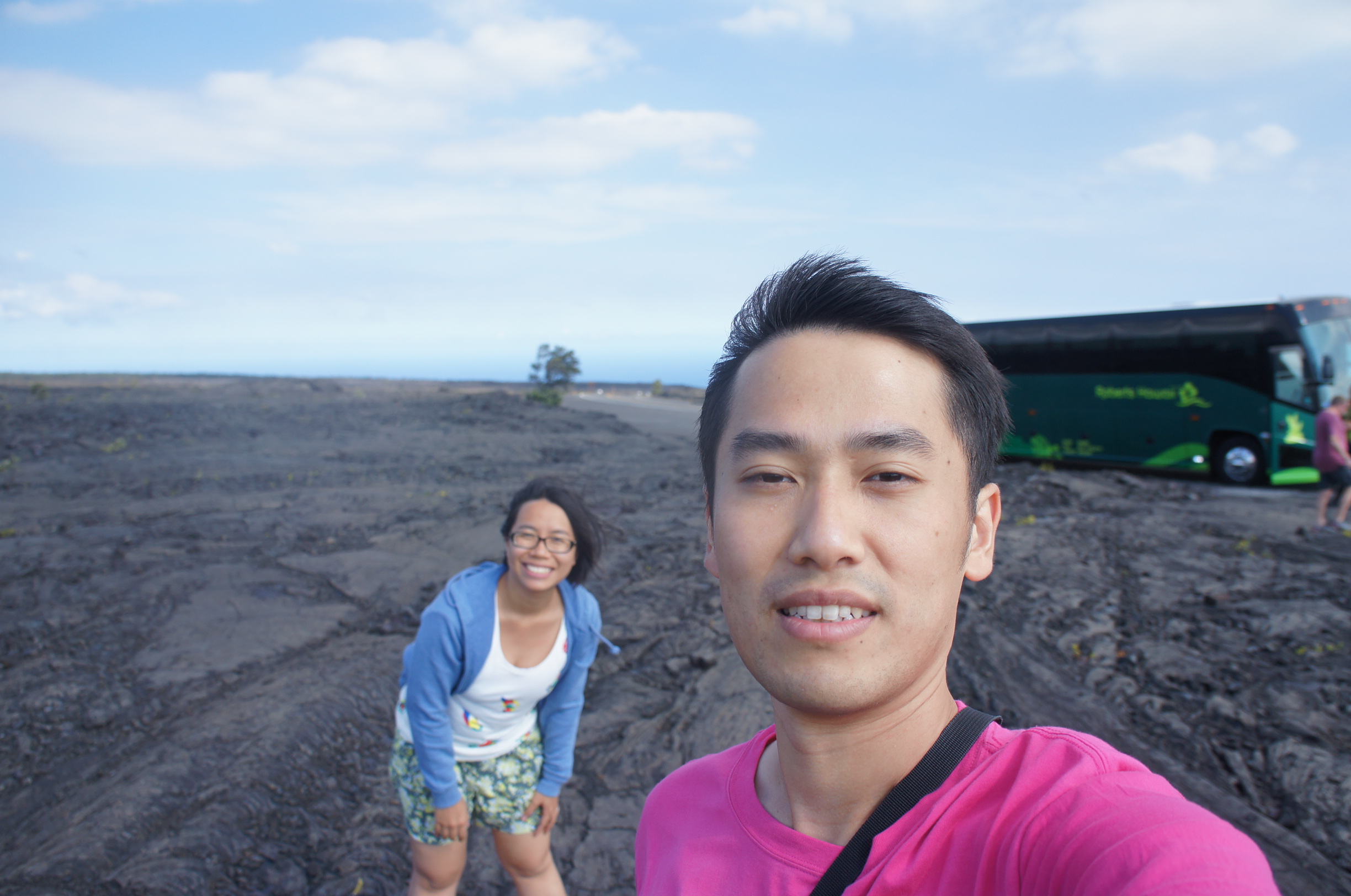 去完夏威夷果仁工廠之後我哋就正式進入Hawaii Volcanoes National Park了﹗睇火山都有好幾個景點,跟鴨仔團嘅我哋只好乖乖坐係旅遊車等帶去~第一站係熔岩湖﹗