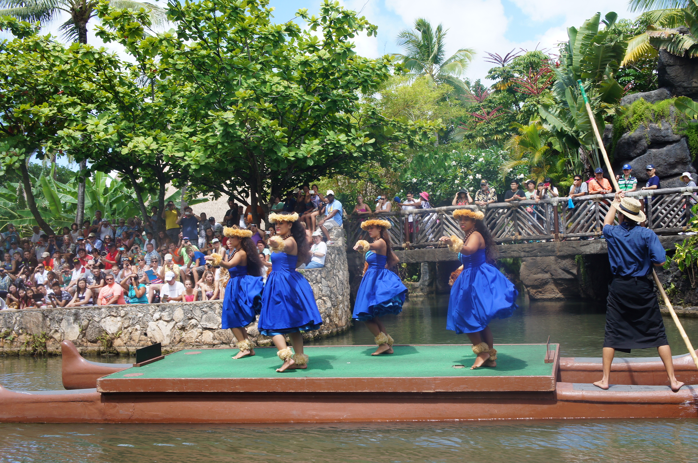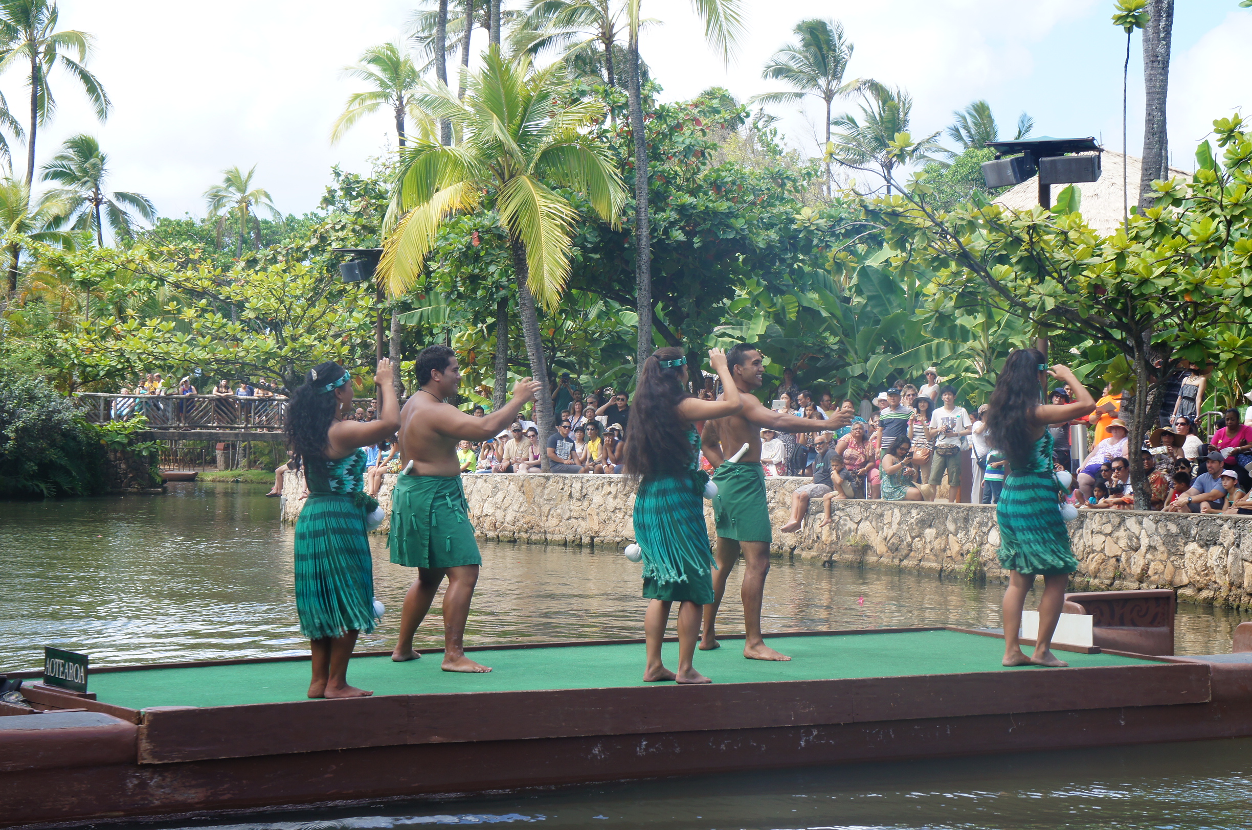 我哋呢個位都唔錯,距離live band雖然遠少少,但巡遊隊伍就睇得好清楚﹗原來canoe pageant係每個民族輪流坐小艇出場,展示佢哋嘅民族服飾、舞蹈、風情,果然賞心閱目~