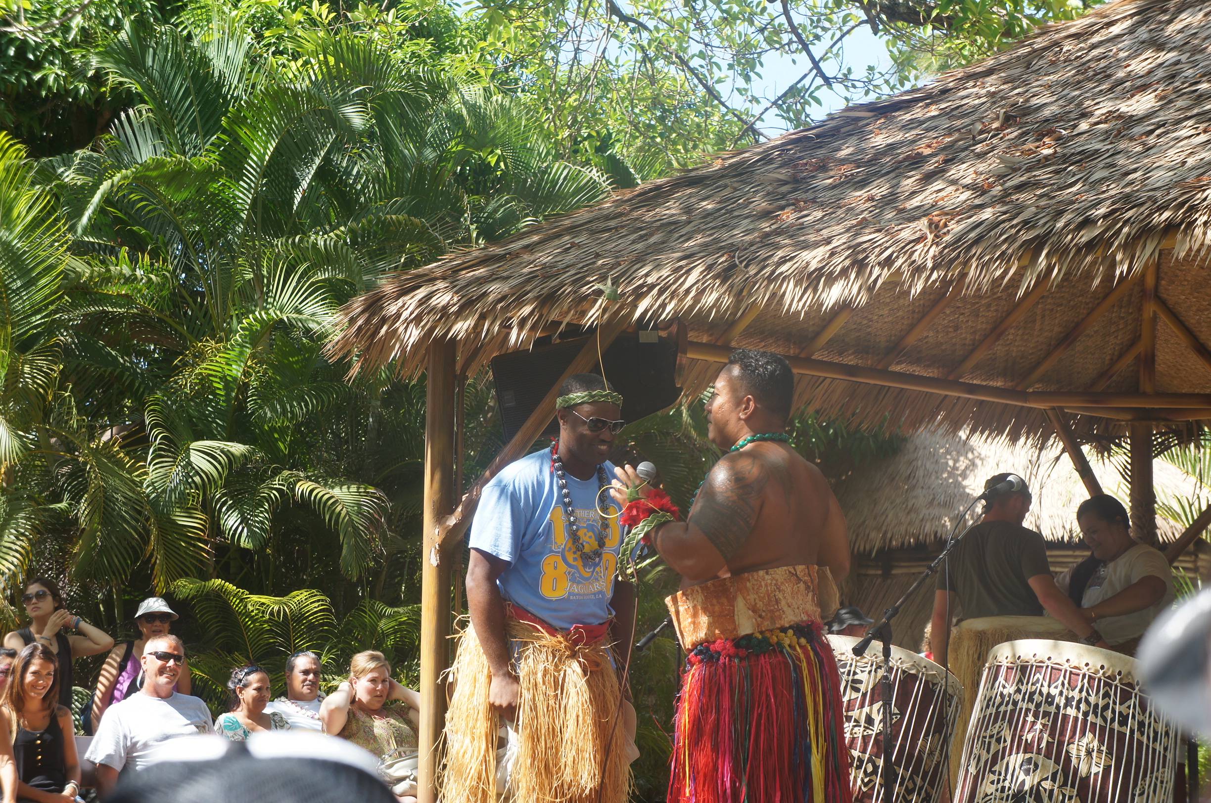 大溪地呢個演出,仲趁機俾在場嘅遊客couple重申婚姻嘅盟約呢,我同day都企起咗身,面對面,跟住主持人教嘅去回應﹗原來佢哋許諾時答嘅係「No﹗」喎,點解呢?原來問嘅係「你會唔會離開你嘅丈夫/妻子?」,咁答案當然係no啦~