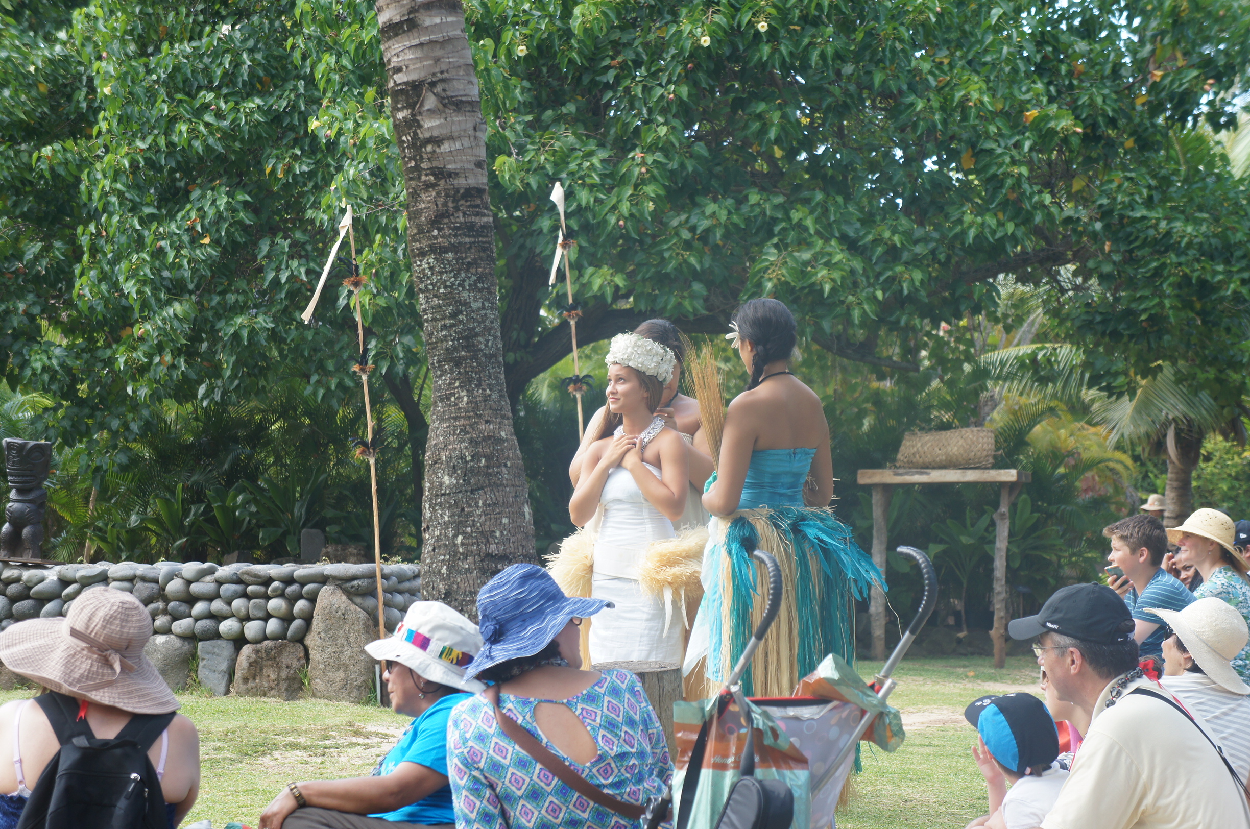 大溪地每日有四五場show,但我哋專登揀呢一場因為係一日只有一場嘅婚禮演出丫﹗我哋揀個靚位先﹗有竹蓆子鋪係草地上面,我哋就揀一張稍稍冇咁曬嘅坐低啦~