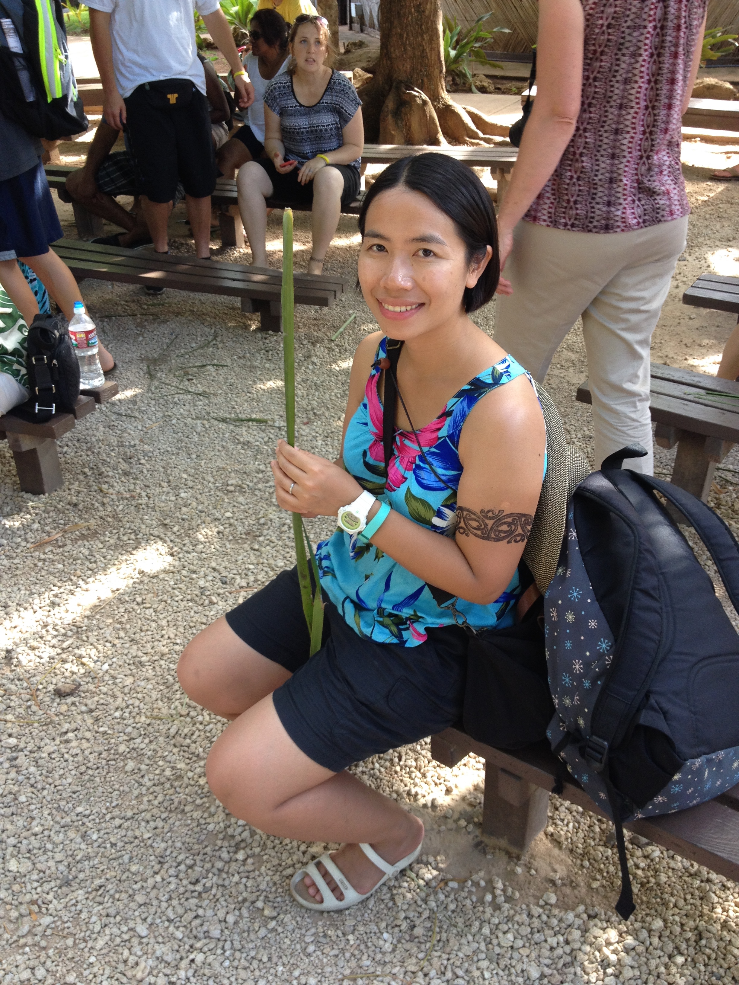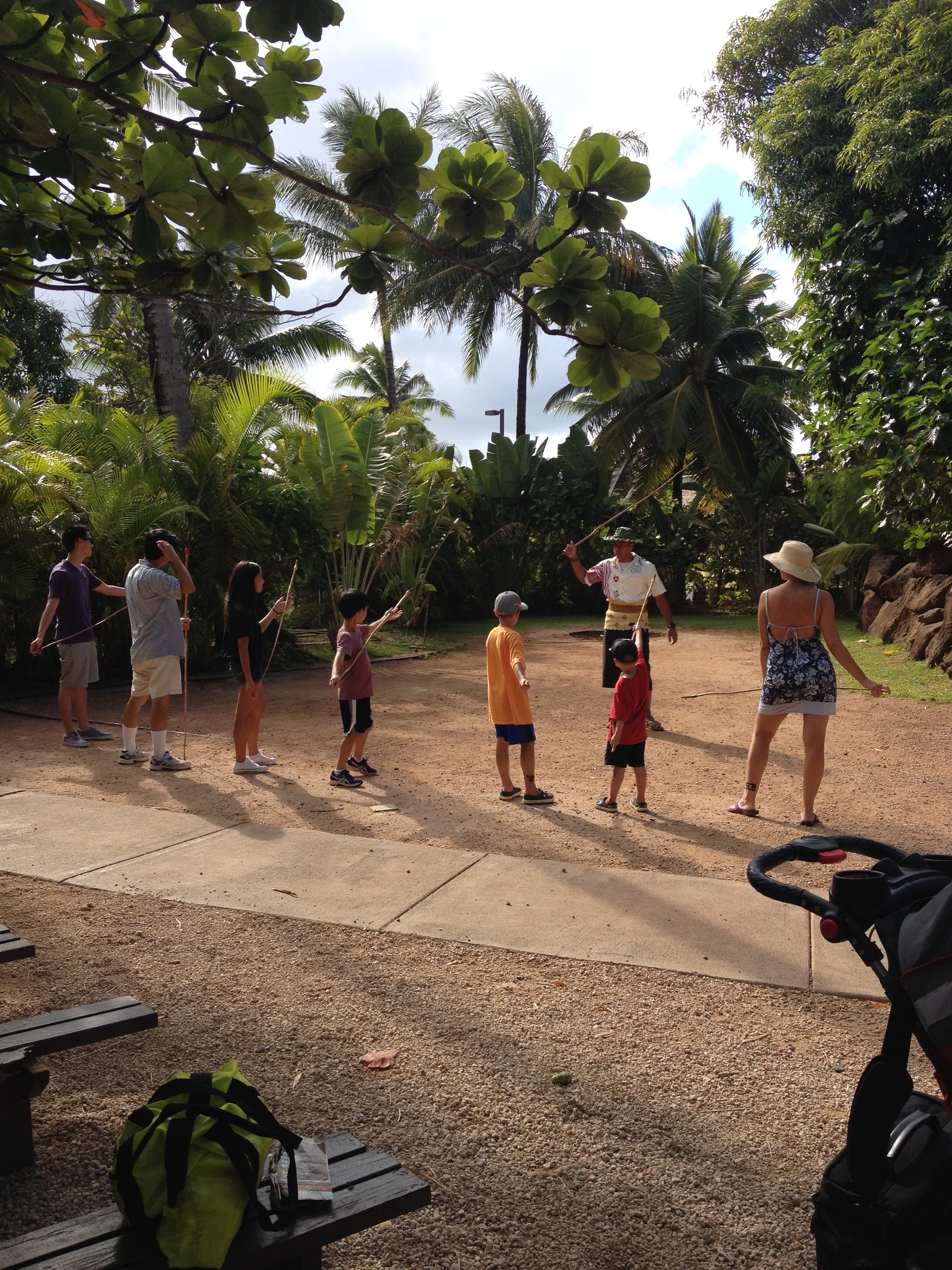 我哋有參加大溪地嘅標槍丫﹗削尖咗嘅木條,加埋有重量嘅槍頭,拋物線地擲出去吧﹗果然男士對於打獵有天分啲?有好幾個爸爸同我老公都可以真正拋到出去呢,有啲仲中咗target個圈添,我嘛,幾次都係中途墜落⋯:p