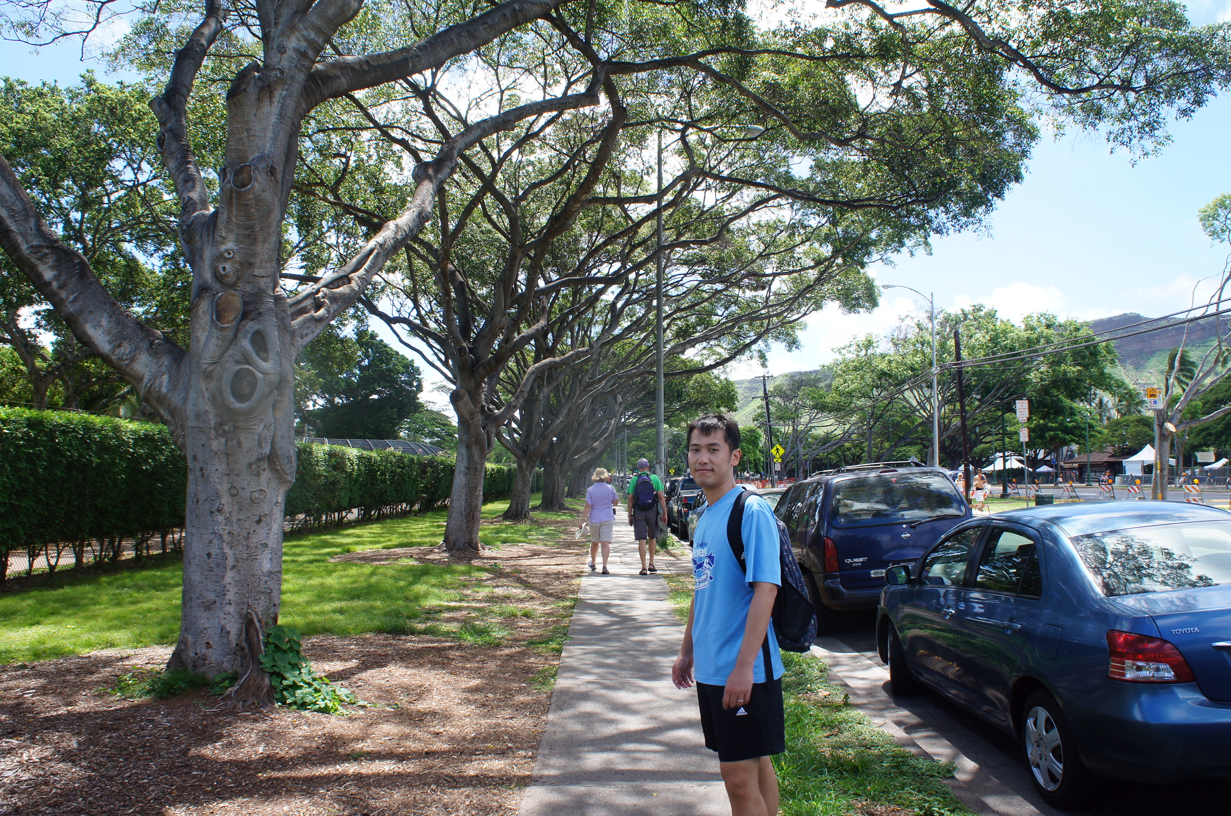 我哋返酒店執捨好裝備再出發﹗其實有巴士去Diamond Head山腳嘅入口,但巴士唔知等幾耐一班又要搵個站,Google Map話行過去都係半個鐘鬆啲,我哋索性行路過去咯~沿路發現美國真係好多人跑步,尤其係女人﹗係香港,日頭好曬嘅時候好少係街上見到人跑步,黃昏之後會多少少,但都唔似得係美國,無論係之前加州嘅Campbell定係夏威夷嘅威基基,經常都見到啲好fit嘅人跑步鍛練呢~