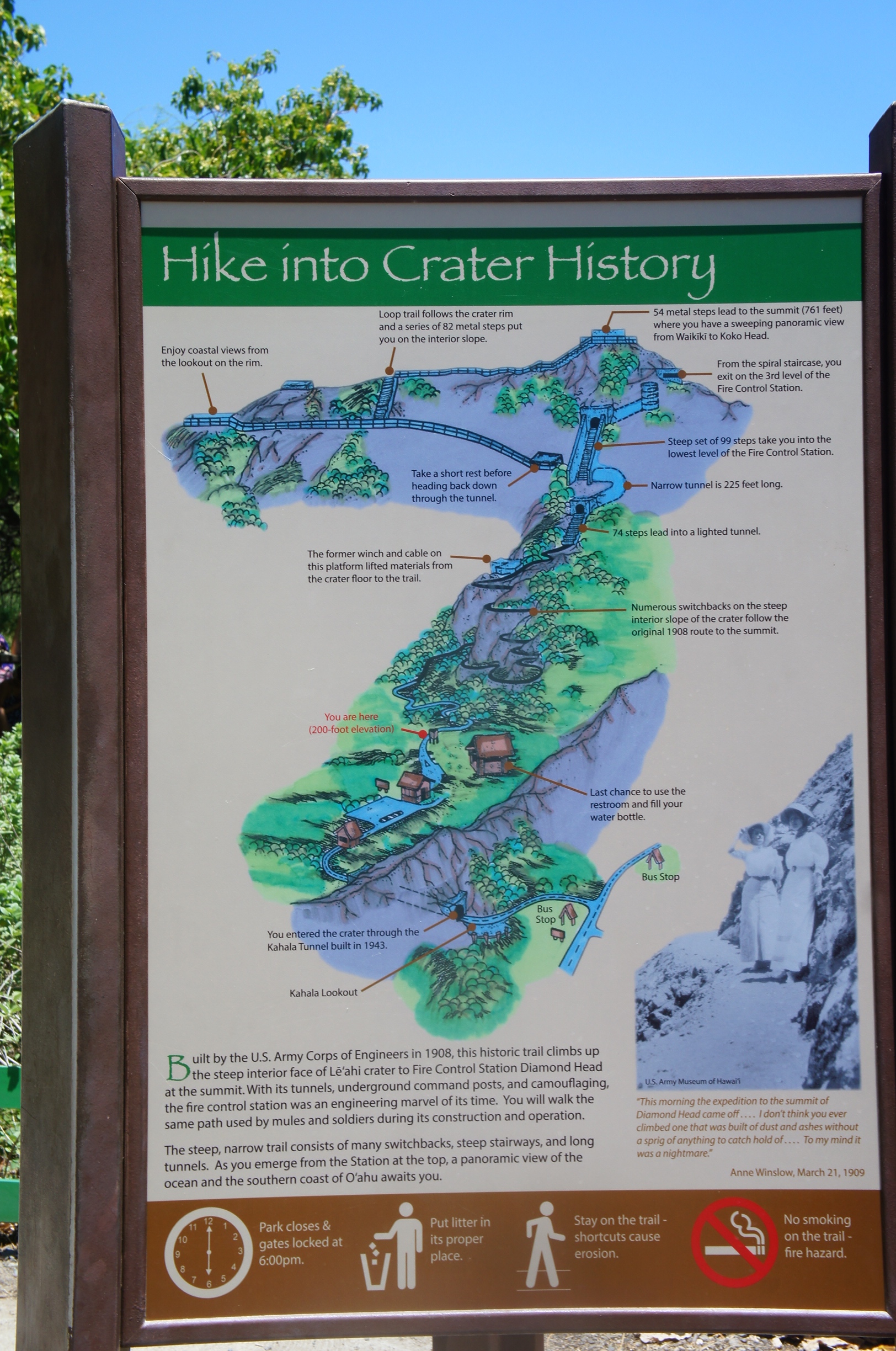 呢幅圖講解咗路程~原來呢條trail 1908年就建成了﹗而前係有軍事作用,利用高嘅地勢嚟監察嘅呢~