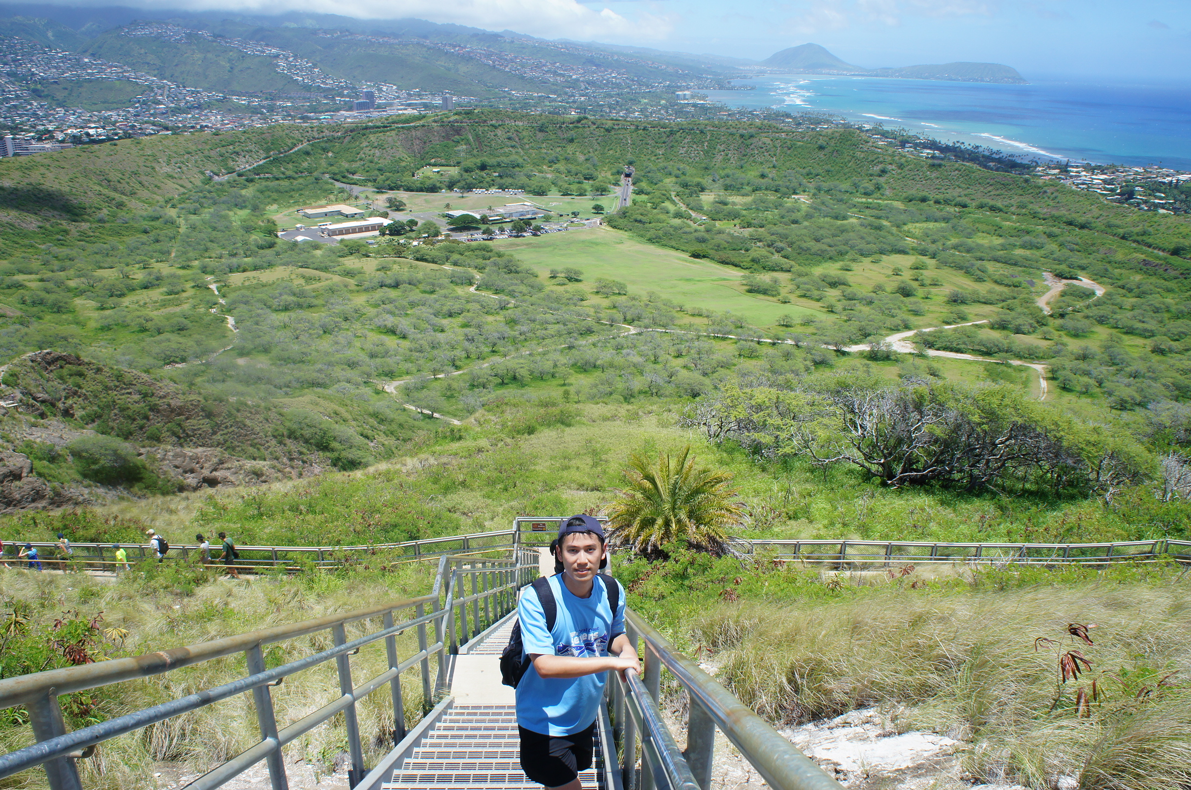 Diamond Head行山嘅目的,就係要登高望遠,從另一個角度欣賞呢個島囉~ 前半段唔算太斜,但路面比較爛,凹凸不平又多石頭,要小心望住條路行~由中段至終點要連續行好多好多梯級,好在先嗰排都多運動,所以都冇乜失禮~條路好曬,好在戴咗頂闊邊帽,但即使搽咗好多防曬,我都覺得會曬燶丫﹗