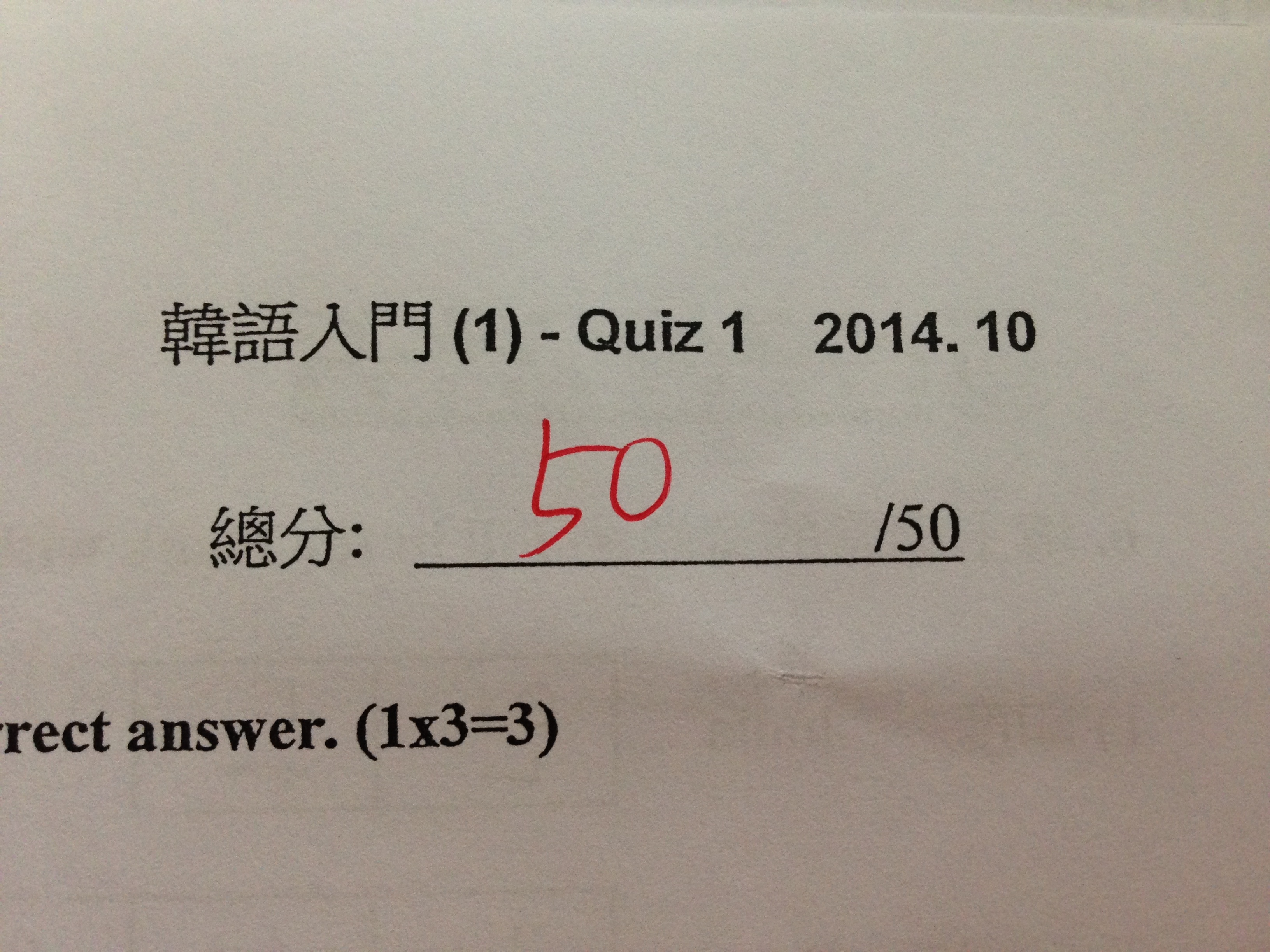 今日見到好耐冇見嘅大佬同事,吱喳一番,講到而家返part-time咁多時間有乜搞,我同佢講起學緊韓文~我好多blog都係「第一次xx」,似乎都應該寫下啲後續,如果唔係就顯得好似有頭威唔知有冇尾陣咁﹗其實由9月11日開學至而家已經學咗兩個月了(大家可以參閱番「有頭威」嘅blog:11-9-2014:韓文班開學咯~),冇做學生咁耐,原來學習真係好開心﹗特別係自己鍾意嘅東東同埋冇壓力嘅時候~考試測驗默書都唔會驚﹗IMG_5170