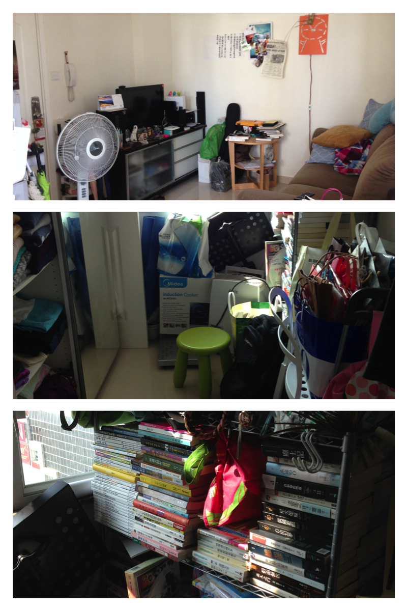 大家可能以為呢三張相係「before」⋯其實係「after」﹗:p只怪iphone5個鏡頭唔夠廣角,其實已經多咗非常多空間,好耐冇試過係間屋行路可以打斜行or挑選路線,之前由一點去另一點都只有一條路,入去儲物房吸塵只需要吸兩下就吸晒expose出嚟嘅地板~