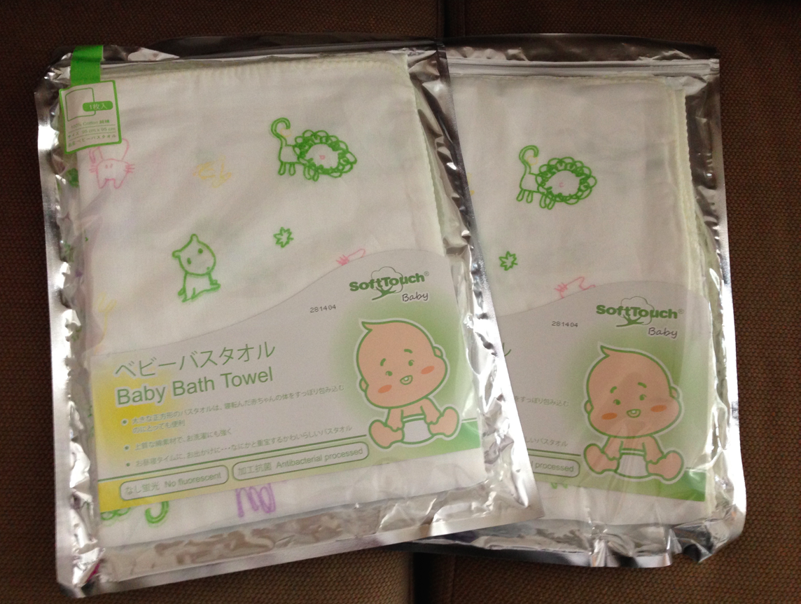 我哋嘅第一樣收穫係紗布毛巾﹗其實三年前結婚時收到嘅禮物之中有唔少大毛巾,仲有好幾條都全新未開,原本諗住俾BB做浴巾就好,但又見到市面上有BB浴巾,究竟有咩分別?不過上次去美素佳兒講座姑娘提到紗布浴巾,好處係吸水得嚟又快乾,用嚟包住BB都柔軟舒適,當時留下印象~今次摸上手果然都幾舒服,買咗兩條﹗返嚟睇番我之前睇過嘅網店原來都有得賣同一件貨品,我哋每張平咗大約$10呢,正﹗好在呢個拎起嚟都唔太重~螢幕快照 2015-02-02 下午3.46.54