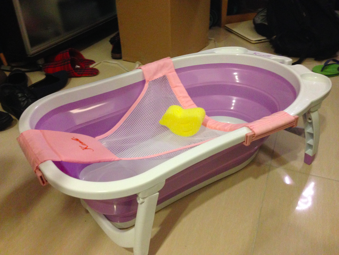 打開咗就係一個普通嘅嬰兒浴盆了,仲有同一品牌配合得啱啱好嘅浴網,舊年係朋友屋企第一次見到浴網呢樣東西都覺得好amazing,大家為滑嘟嘟細細粒嘅BB沖涼一定會好緊張,有個浴網好似會放心啲咁~決定買之前同老公上網睇過關於呢個浴盆嘅youtube片,有教點樣開合之餘,原來盆底有個knob,水溫太熱顏色會變,咁又多一個保障啦~當然認真測水溫先係最重要﹗
