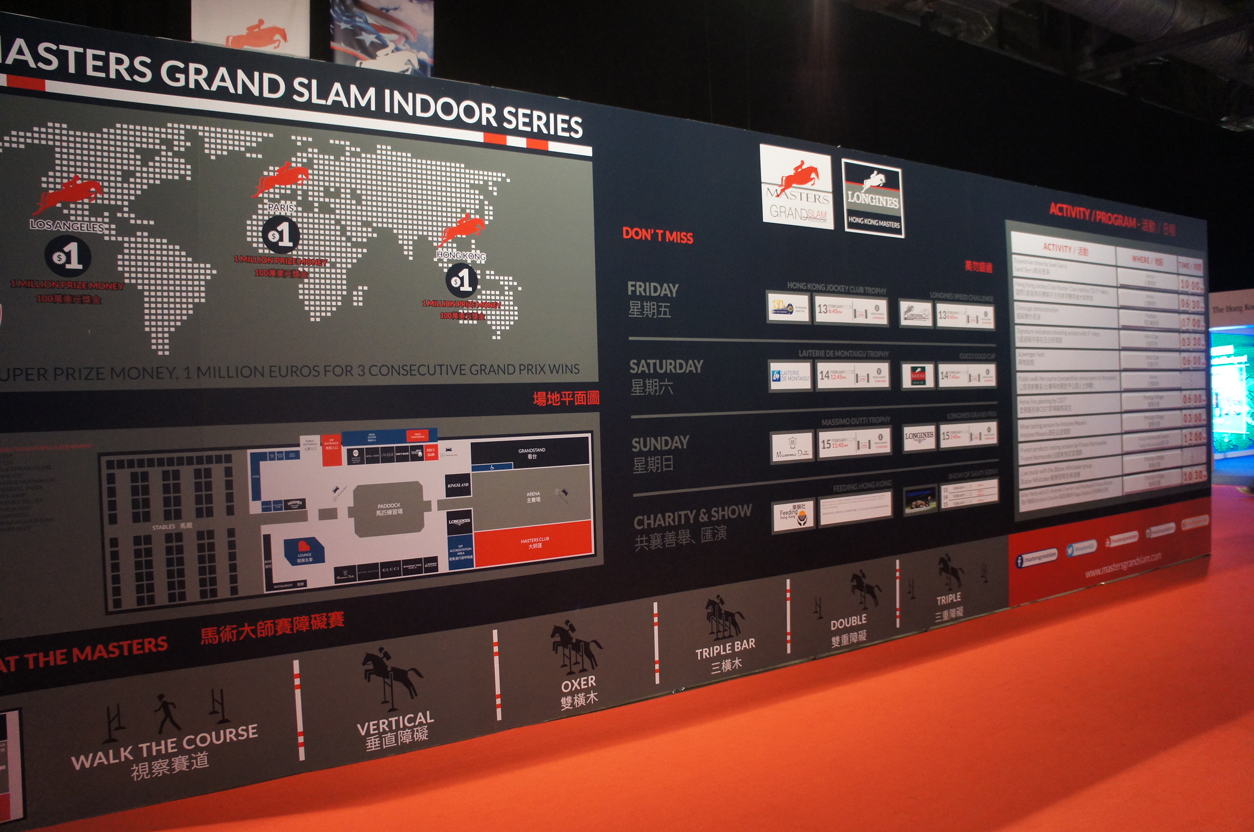 呢度show咗呢幾日嘅schedule,第二行寫咗星期六晚有Gucci Gold Cup了~其他活動就寫係最右邊,大家可以按興趣去參加﹗底部嘅圖像講解少少馬術比賽嘅basics俾大家認識認識~