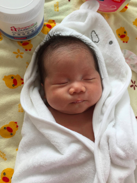 因為耗光兩條曉曉專用大毛巾,5月4日沖涼時就開咗呢件詩蓁表姐送嘅毛巾質地包被嚟用,太可愛了~:D