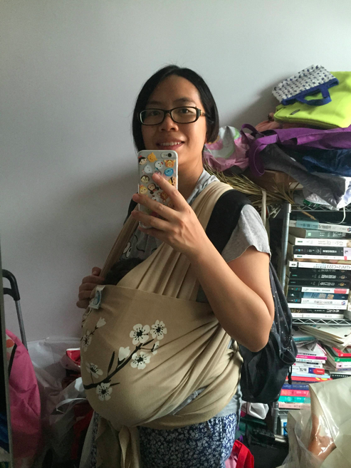 用Moby Wrap+背包,因為Moby Wrap雙肩負重,而且肩帶夠粗,4kg嘅曉曉真係一啲都唔重,行多好遠都得﹗不過佢頸仔始終冇乜力,佢又唔係好似說明書咁昂起頭靠係我胸前,我怕啲布搞到焗親佢,所以keep住用左手撐開塊布,變相令自己得一隻手做嘢﹗而且⋯