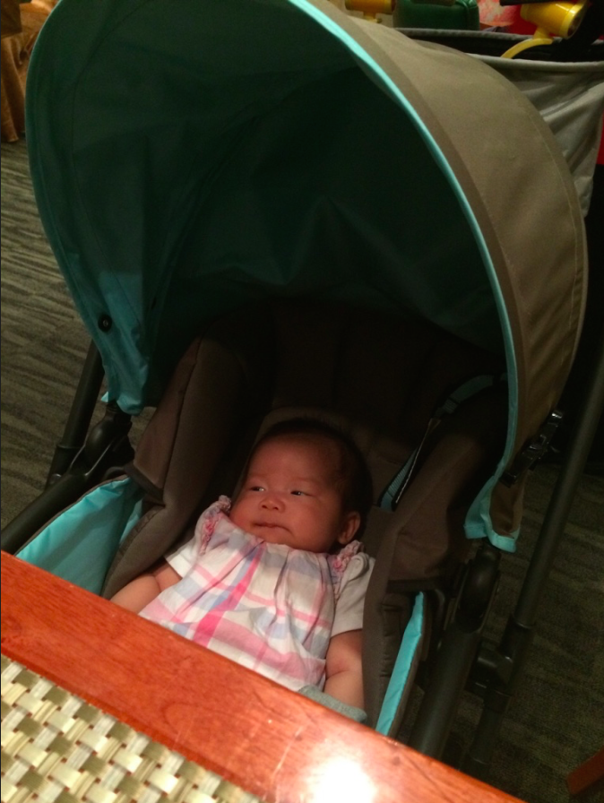 由差不多滿月時第一次坐(嗰日係落屋企樓下only,由Joe叔叔手中借來VTO姨姨嘅Medela雙泵),到而家日日坐,感覺佢已經知道,上車車即是出街街了﹗近至落一落街買餸食飯,中距離至個個星期返教會,以至最遠過埋海陪我哋去北角食自助餐,曉曉已經開始習慣佢嘅座駕啦﹗媽媽亦開始熟習操控架車同路線~吓?推車都有技巧?有㗎~
