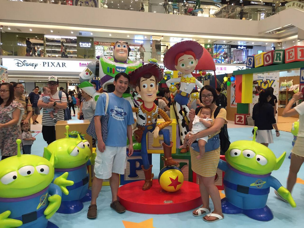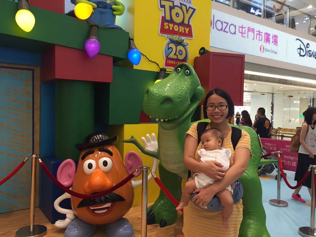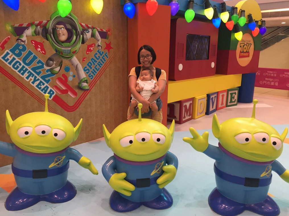 今個暑假屯門市廣場中間個空地又有搞作,有Toy Story二十週年嘅展覽呢~平時我哋都唔同人哋逼影相,今次一來有咗小朋友(雖然曉曉其實完全唔識高興住),二來我自己根本想入去睇:p,我哋呢個晚上食完飯都入去湊湊熱鬧啦~