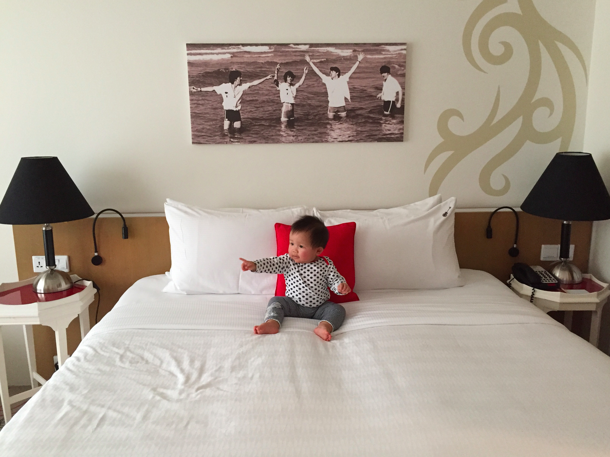 因為曉有機會唔肯瞓BB床,要同我哋一張床瞓,所以公公婆婆姨媽姨丈讓咗間double room俾我哋,唔該晒丫﹗好在咋,原來只有double room有浴缸,佢哋twin room只有企缸,同曉曉沖涼都係有浴缸方便啲~Hard Rock Hotel以Beatles做主題,曉曉,你扮緊邊個呀?