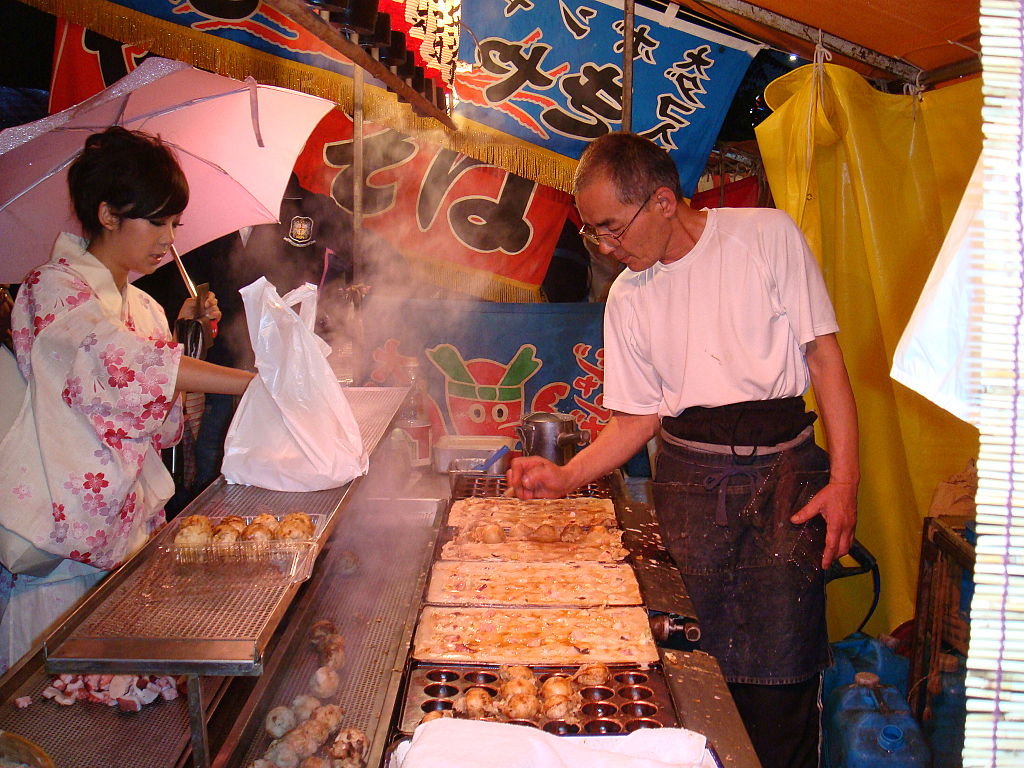 初初去到時都未係好多人住,個個攤檔都作好做生意o既準備,主要都係賣小食啦,好似香蕉朱古力呀、串燒呀、燒八爪魚丸呀、炒麵呀之類…同漫畫o既描述好compatible呀﹗