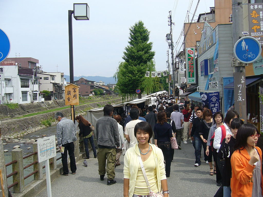 因為之前o個晚係白川鄉搵唔到酒店,我o地比原定提早o左一晚o黎到高山(takayama),好事丫~多D時間周圍去行下o羅~我o地一早就可以出門口啦﹗高山o既酒店唔包早餐,而我o地亦打算第一站行朝市(morning market),應該好多食o野o既機會,所以咁就出去了~