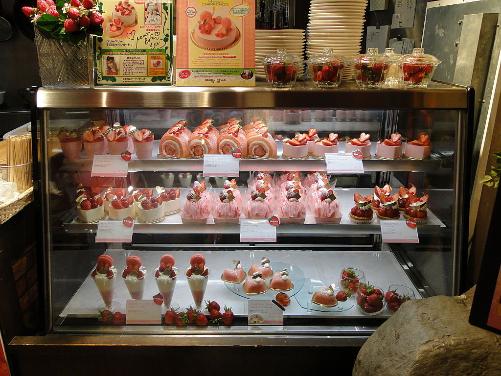 吸引到我幫襯o係呢間全部粉紅色,專門用士多啤梨做所有甜品o既鋪頭~你睇,個凍櫃一遍粉紅﹗:)