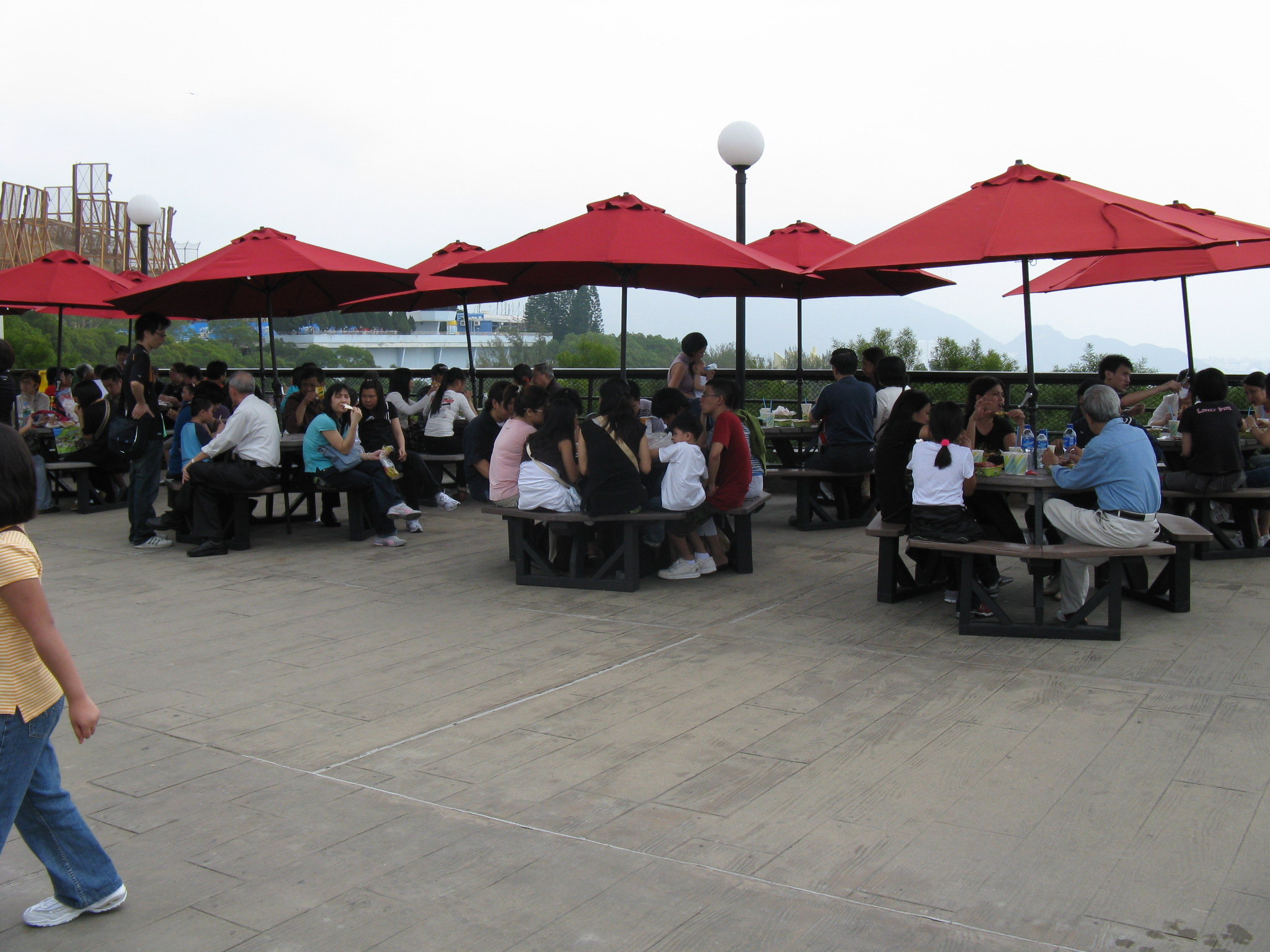 所有座位都滿滿的,Hong Kong is full of people﹗我o地結果坐係路邊食,而o個個位正正係大平洋海岸o既入口,勁多人經過~