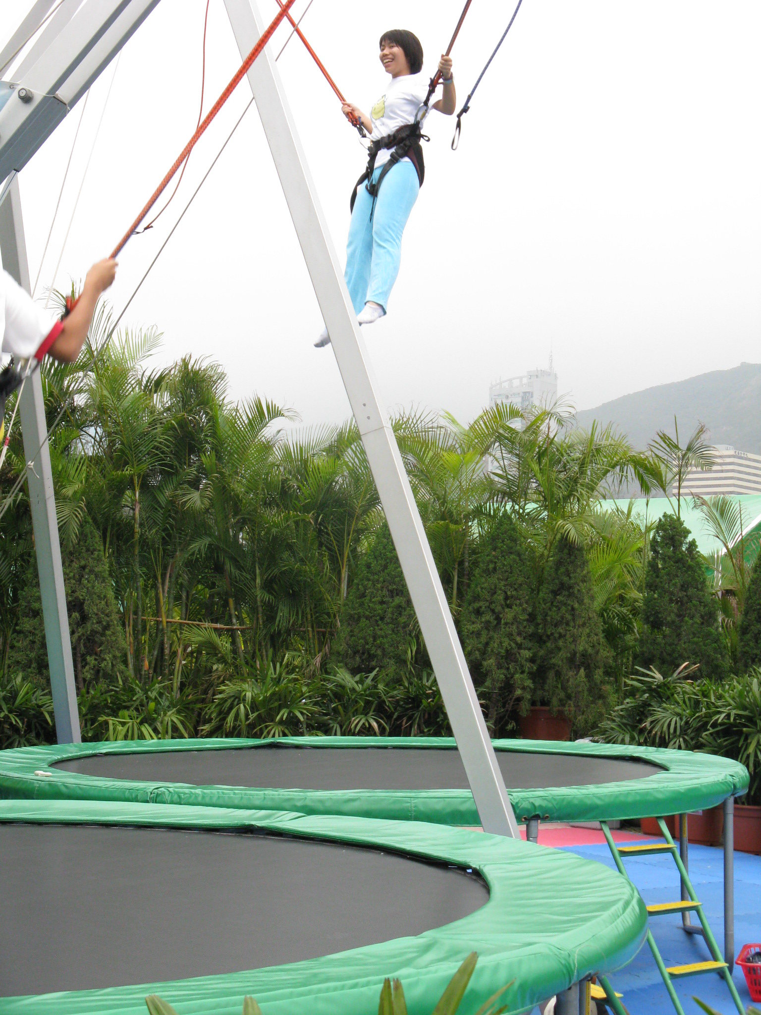 我排隊等熱氣球時見到呢個「至威笨豬跳」已經好想玩了~其實係有彈彈繩縛住個身o既跳彈床,唔係刺激o個type,但好開心,可以跳得好高~你睇我笑到幾開心就知~